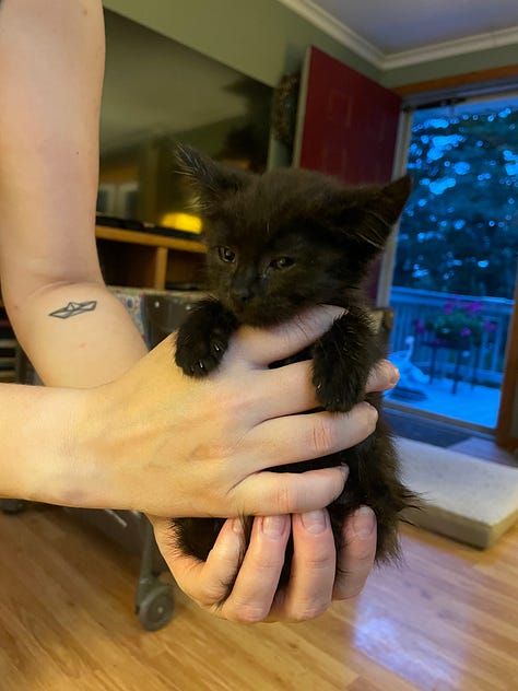 Cut to last weekend and my parents finding a litter of kittens in their backyard. I think you know where this is going.